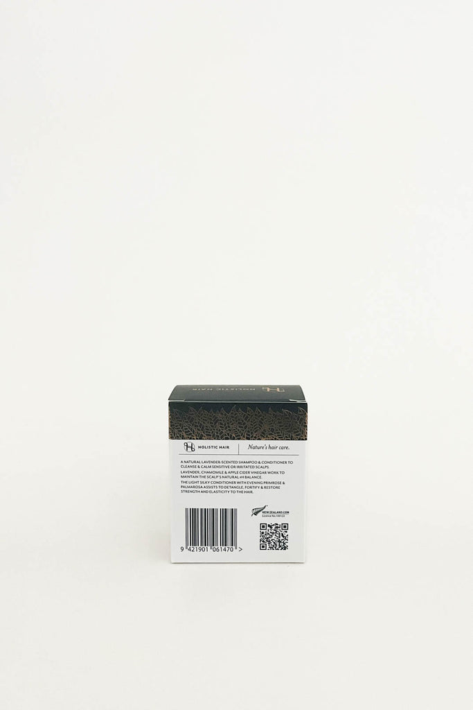 A lavender scented natural shampoo and conditioner formulated to cleanse and calm sensitive or irritated scalps.