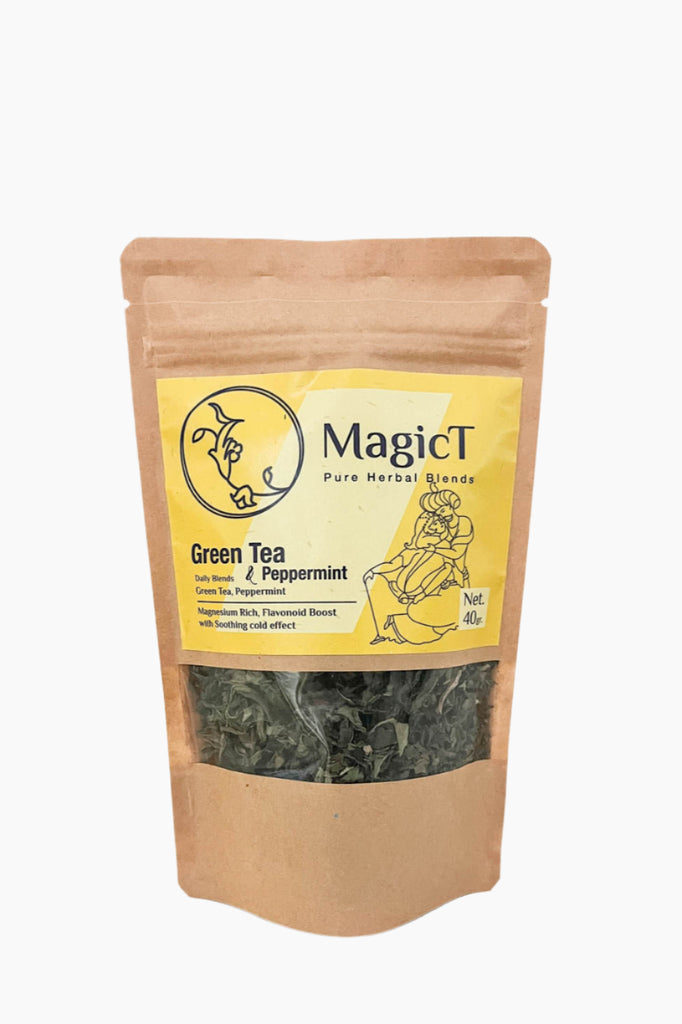 MagicT's Green Tea and Peppermint blend features premium, high-magnesium green tea leaves sourced from Iran. Green tea is known for its potent antioxidant content and metabolism-boosting properties, making it a great addition to any healthy lifestyle.