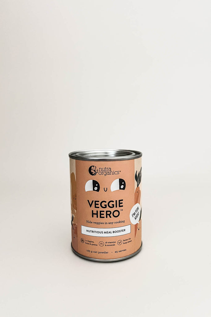 A heroic blend of 15 veggies, fruits and super greens designed for kids’ taste buds and a source of peace of mind for parents when it comes to providing healthy meals for picky eaters. No more nagging, pleading and bribing for the broccoli to go down. Veggie Hero is here to save the day from fussy eating moments and meal time veggie standoffs!