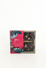 Love, Dark chocolate (60% cacao Solids, Cacao Nibs, Cacao Butter), Raw Sugar, Sunflower Lecithin), dried apricots, hazelnut, almonds, dried cranberries, pumpkin seeds, freeze dried raspberry.
