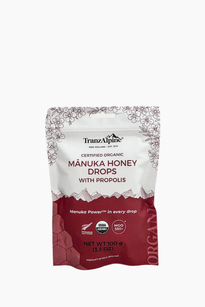 • Highly effective on-the-go organic Mānuka honey drops MGO550+ with propolis.
